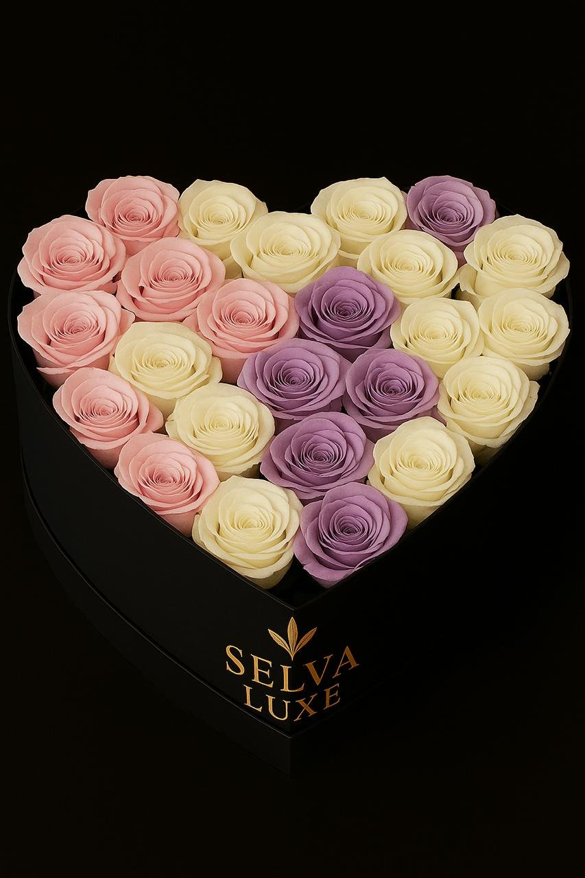 / Corazón de Rosas moradas, blancas y lilas Usd $339.90
