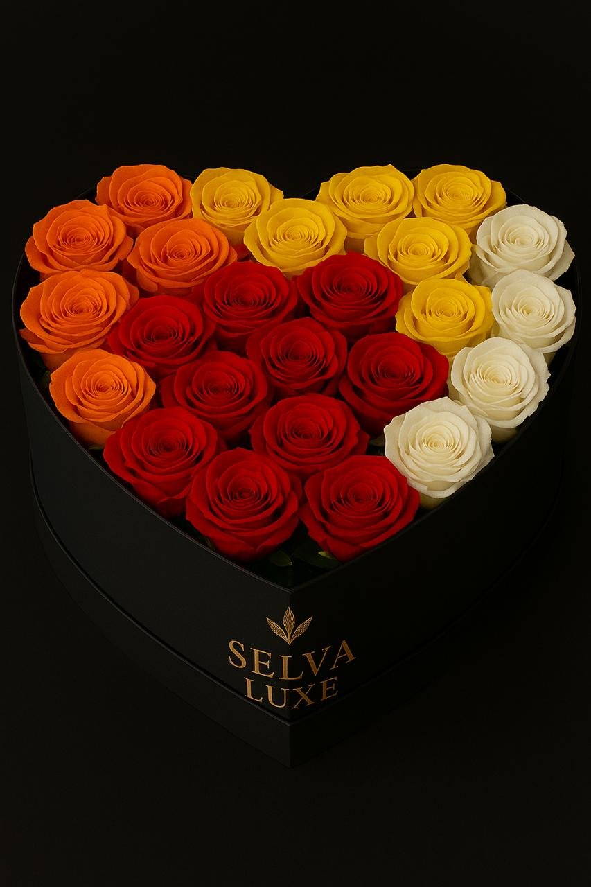 Corazón de Rosas rojas, blancas, amarillas y naranjas Usd $339.90